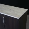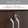 材質【ダークブラウン】 天板、天板エッジ:ウエンジ人工杢(ウレタン塗装仕上) 【マーブルホワイト】 天板(表面材):メラミン化粧板(フラッシュ) 天板エッジ:メラミン 【共通】 扉、側面、内部:化粧合板仕上げ ハンドル:亜鉛ダイカスト