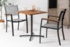 備考 ●シンプルなテーブルは様々なチェアに合わせやすくカフェスタイルを演出。 ●フレームにはアルミ(粉体塗装)を使用した軽量仕上げ。 ●脚先にアジャスターが付いているのでガタツキ調整が可能。