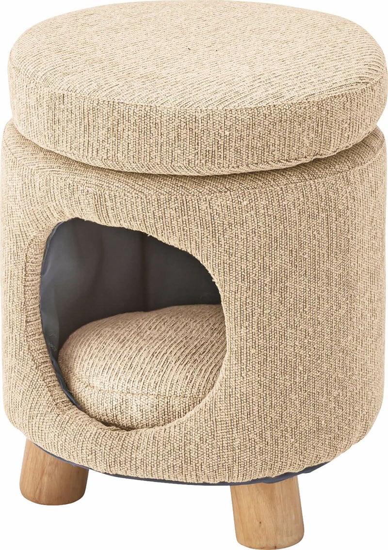 ペットハウススツール スツール ペットハウス ペットベット 犬 猫 ペット クッション付き 脚付き 天然木 かわいい 収納 ラウンド