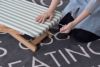 備考 爽やかなストライプ柄と木製の脚を採用したアイロン台。女性に人気のナチュラルテイストに仕上げました。