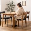 ●黒のスタイリッシュな座面とナチュラルな木目の脚が、温かさとメリハリのある空間を演出。