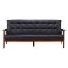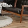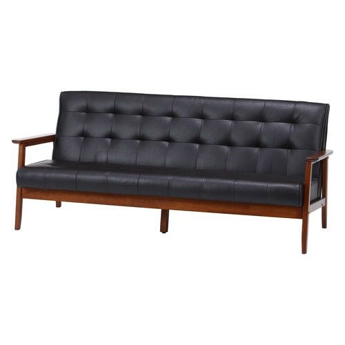 合成皮革と天然木を組み合わせたレトロでオシャレなデザインの3人掛けソファーです。