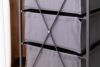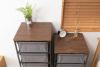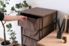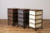 備考 ●お部屋のインテリアにもなじみやすく、使い勝手のいいキャンバスチェスト。●ダイニングや玄関、寝室、洗面所、キッチンなど、様々なシーンの収納として使えます。●脚部はキャスター付きで移動もラクに行え、ストッパーも付いているのできちんと固定することもできます。●天板はインテリア性のある木目調のシートを使用。角は丸く仕上げてあるので安心です。●天板正面にはワンポイントデザインとして小さなプレート付き。●引き出しには取っ手が付いているのでスムーズに出し入れできます。