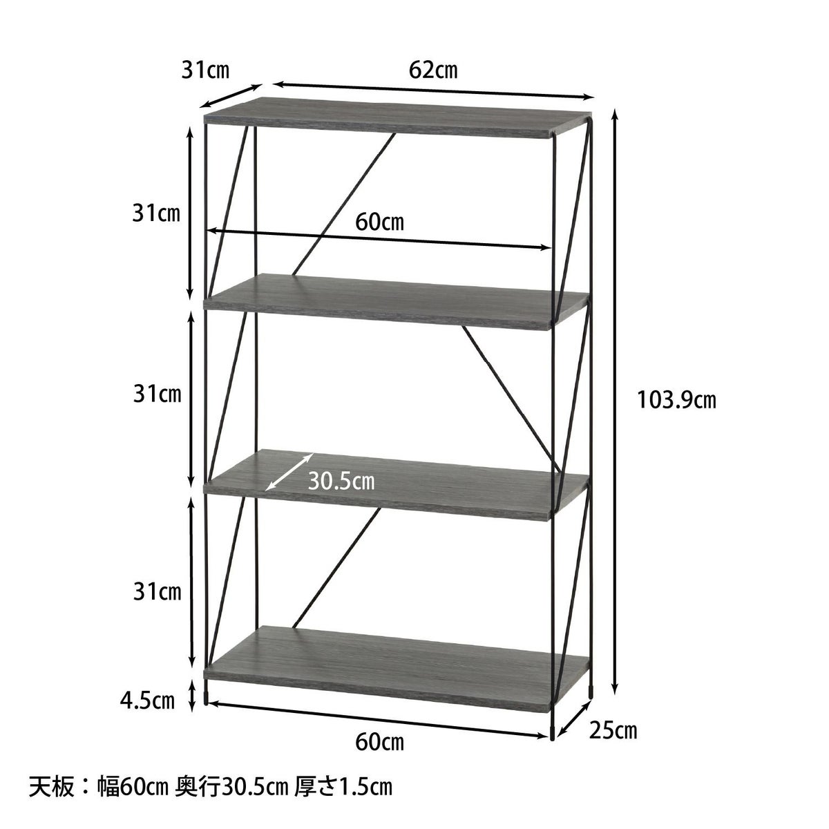 不二貿易 EZBO 工具不要 組立て簡単 木目調 ブラック EZBOワイヤーラック4段 60幅 不二貿易 2色 木目調 棚 ブラック 組み立て 簡単 シンプル 幅620 奥行310 高さ1039mm [C/D:77553]