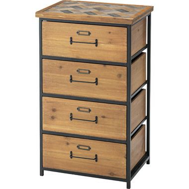 備考 ●和風テイストを取り入れた、ヴィンテージスタイルのチェスト。●天板面はヘリンボーン柄で仕上げたこだわり仕様。●天然木(杉)の風合いを活かしたデザインなので、和室・洋室どちらにも合わせられる使いやすいデザイン。●引き出しが4杯付いているので、たっぷりと収納できます。●引き出しの前板にはラベルフレームが付いているので、仕分け収納に便利。