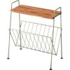 備考 ●細身のスチールフレームに天然木の天板を組み合わせた、シンプルで使いやすいおしゃれなサイドテーブル。 ●天板の上にはカップや本、リモコンなど。 ●ちょっと大きめの雑誌類は下段のマガジンラックに収納。 ●雑誌類の出し入れがしやすい、V字型のマガジンラック。 ●天板には天然木(アカシア)を使用。木目や色合いが一つ一つ異なる風合いが魅力。 ●脚先には小さな円形のプレート付き。安定感があり床への傷防止にもなり安心。