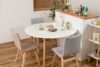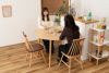 備考 キッチンカウンターや壁面に合わせて使用できる変形テーブル。 省スペースでも、ラウンドタイプのテーブルとして使用できます。 4人掛けとして使用にも十分な広さのテーブルです。